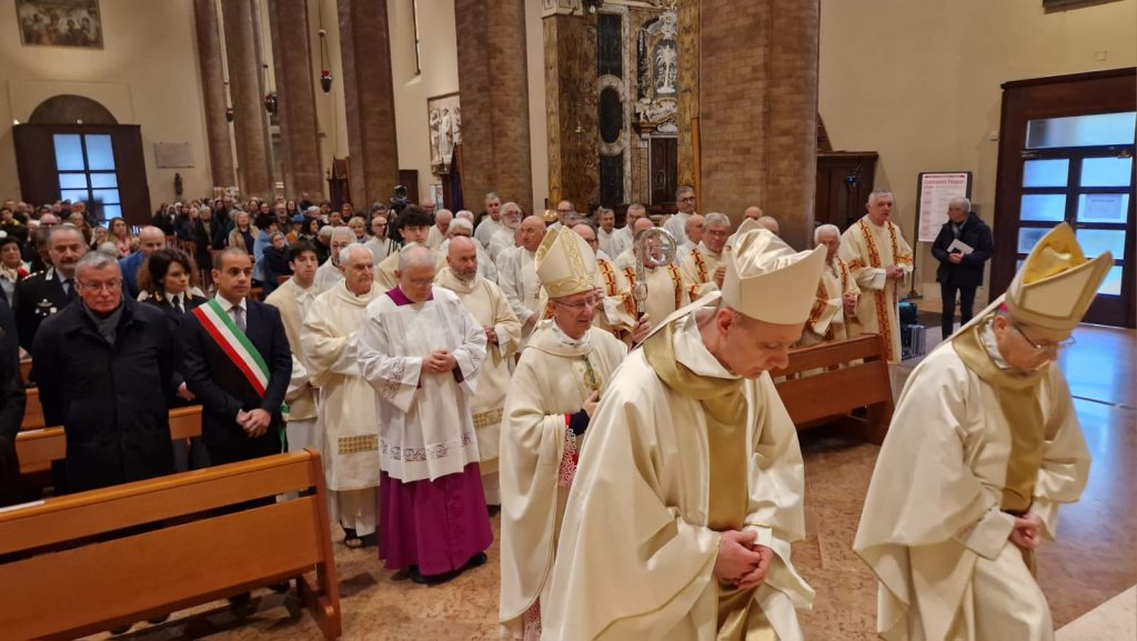 E con voi ringrazio Dio per il 25° anniversario di sacerdozio di padre Joseph Mubenga, il 50° di monsignor Walter Amaducci e monsignor Pietro Luigi Tonelli, il 70° di monsignor Mario Morigi, il 75° di monsignor Silvano Ridolfi e il 25° di diaconato di Marco Casali. Ricordiamo anche il diacono Pino Battistini nella sua nascita alla vita eterna.