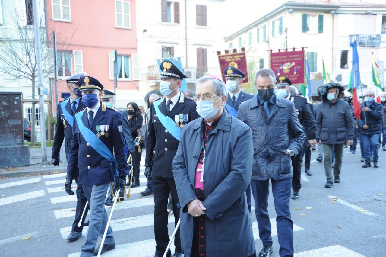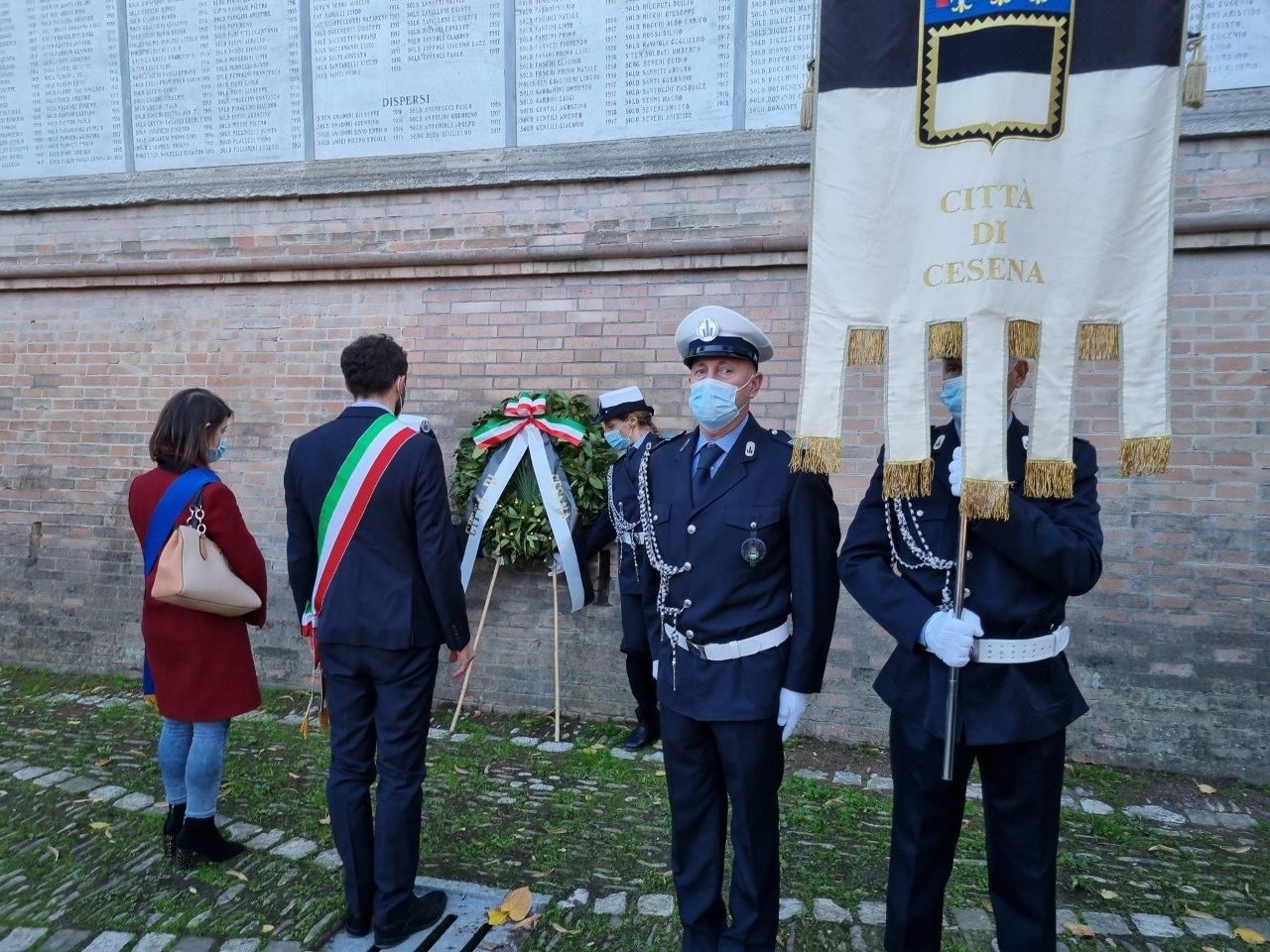 Oggi pomeriggio anche Cesena ha omaggiato il Giorno dell’Unità nazionale e la Giornata delle Forze armate. Una cerimonia semplice e nello stesso tempo emozionante, partita con un piccolo corteo che si è mosso dal Loggiato del Comune in piazza del Popolo per arrivare al Monumento dei Caduti in viale Mazzoni per la deposizione della Corona di alloro.