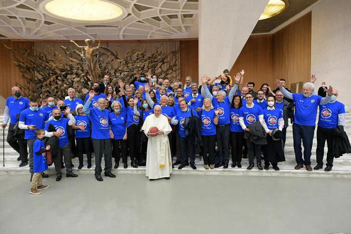 Campioni di un tempo della pallacanestro nazionale e internazionale ricevuti in udienza da papa Francesco.