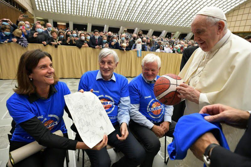 Campioni di un tempo della pallacanestro nazionale e internazionale ricevuti in udienza da papa Francesco.