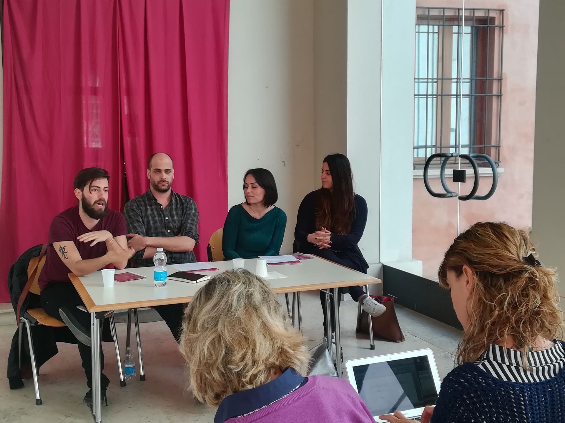 Nella foto due degli organizzatori Cesare Biguzzi e Giacomo Zani con Maura Pazzaglia assessore alla Cultura di Savignano e Alice Parma sindaco di Santarcangelo.