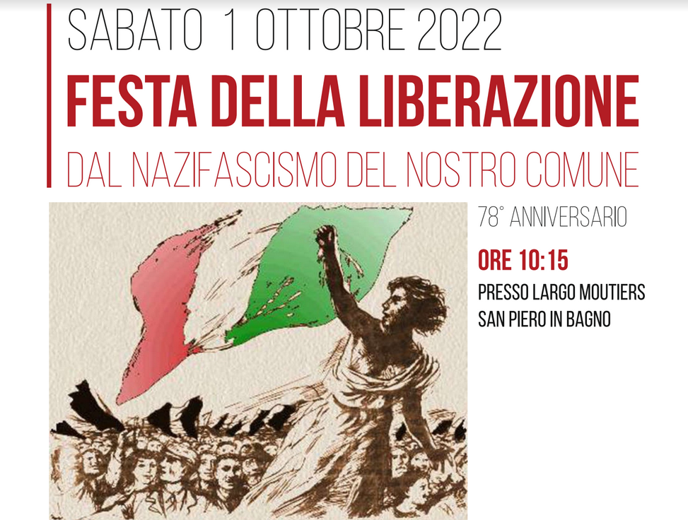 Il Comune di Bagno di Romagna si prepara a celebrare il 78° anniversario della Liberazione dal nazifascismo, con la manifestazione che si terrà sabato 1° ottobre in Largo Moutiers a San Piero in Bagno, a partire dalle 10,15.