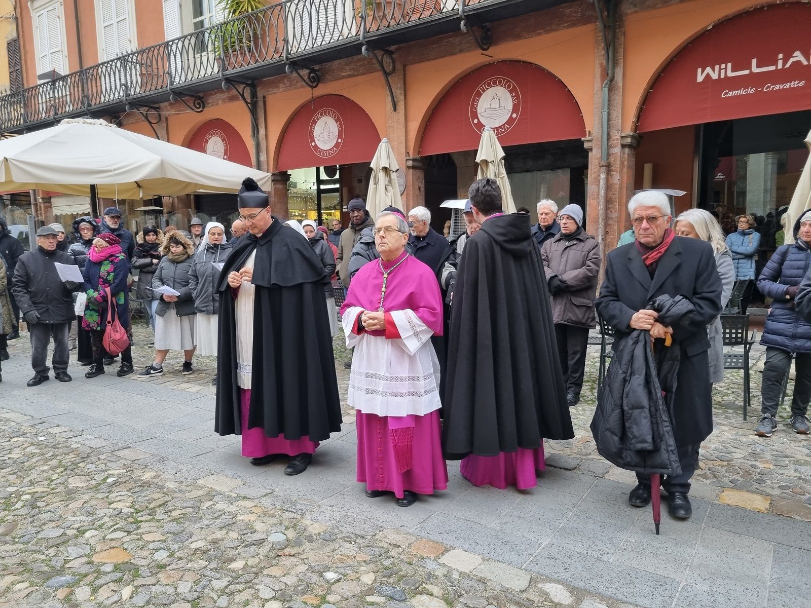Attorno al vescovo Douglas Regattieri, oggi nel primo pomeriggio si sono radunate alcune decine di persone per l’omaggio a Maria Immacolata, nel giorno a lei dedicato.