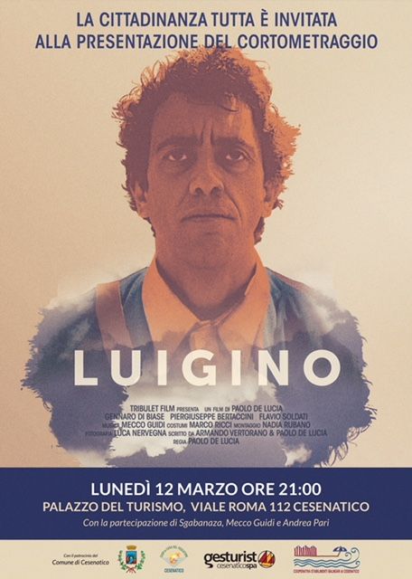 Un’occasione da non perdere, anche perchè in terrazza chiunque vorrà potrà gustare vino e ciambella offerto dai pescatori di Cesenatico, parlando con il cast di “Luigino”: da Piergiuseppe Bertaccini in arte “Sgabanaza” fino a Gennaro Di Biase, noto e valente attore di successo nel panorama teatrale italiano e straniero.La colonna sonora della serata, proprio come quella del cortometraggio, sarà di Mecco Guidi che, in terzetto, suonerà dal vivo brani di walzer e mazurka. Oltre alla visione del corto ci si potrà muovere all’interno di un’installazione di Tribu, noto artista di Cesenatico. Nella serata ci saranno anche gli interventi di Andrea Pari, scrittore di Gatteo Mare, e di membri della Bottega del teatro di Cesena che ricorderanno Franco Mescolini, attore recentemente scomparso, che più di tutti è riuscito a dare una levatura teatrale al dialetto romagnolo.Parteciperanno anche tutti quelli che si sono improvvisati attori e attrici sudando, divertendosi e parlando in quella che resterà sempre la nostra “prima lingua del mondo”, il dialetto romagnolo.