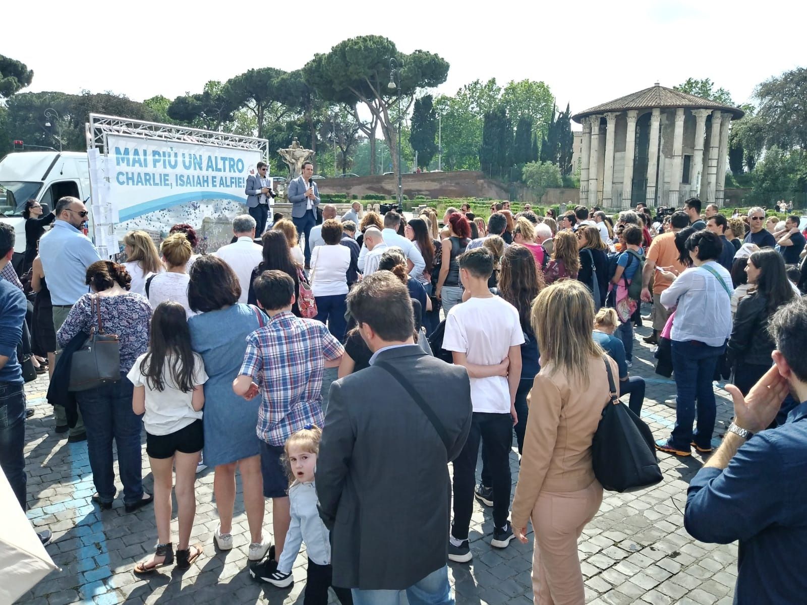 “Mai più un altro Charlie, Isaiah e Alfie”. È questo lo slogan che ha richiamato sabato pomeriggio a Roma, in piazza Bocca della verità, personalità politiche, giornalisti, sigle del mondo prolife, ma anche tante famiglie con figli alla manifestazione promossa da “Steadfast onlus”. L’associazione presieduta da Emmanuele di Leo ha seguito da vicino la recente vicenda di Alfie Evans, deceduto all’ospedale Alder Hey di Liverpool in seguito alla sentenza che ne ha decretato l’interruzione dei sostegni vitali, facendosi promotrice di una moratoria europea a favore del rispetto della vita in ogni suo stadio, portando l’Italia in prima linea in questa battaglia di civiltà.