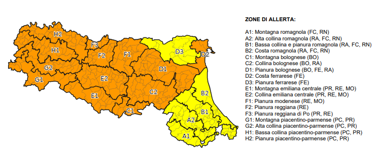 Le precipitazioni genereranno nuovi incrementi sui corsi d’acqua e in particolare sui bacini centro occidentali, dove i livelli idrometrici potranno superare la soglia 2. Nel settore montano centro-occidentale saranno possibili fenomeni franosi, ruscellamenti lungo i versanti e rapidi innalzamenti dei livelli idrometrici nel reticolo minore. Nei restanti settori collinari e montani i fenomeni saranno più localizzati e conseguenti alla vulnerabilità dei versanti a seguito delle precipitazioni dei giorni precedenti.