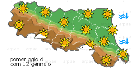 Il servizio meteo di Arpae dell’Emilia-Romagna prevede cielo sereno o poco nuvoloso per tutto il fine settimana con temperature minime in lieve aumento.