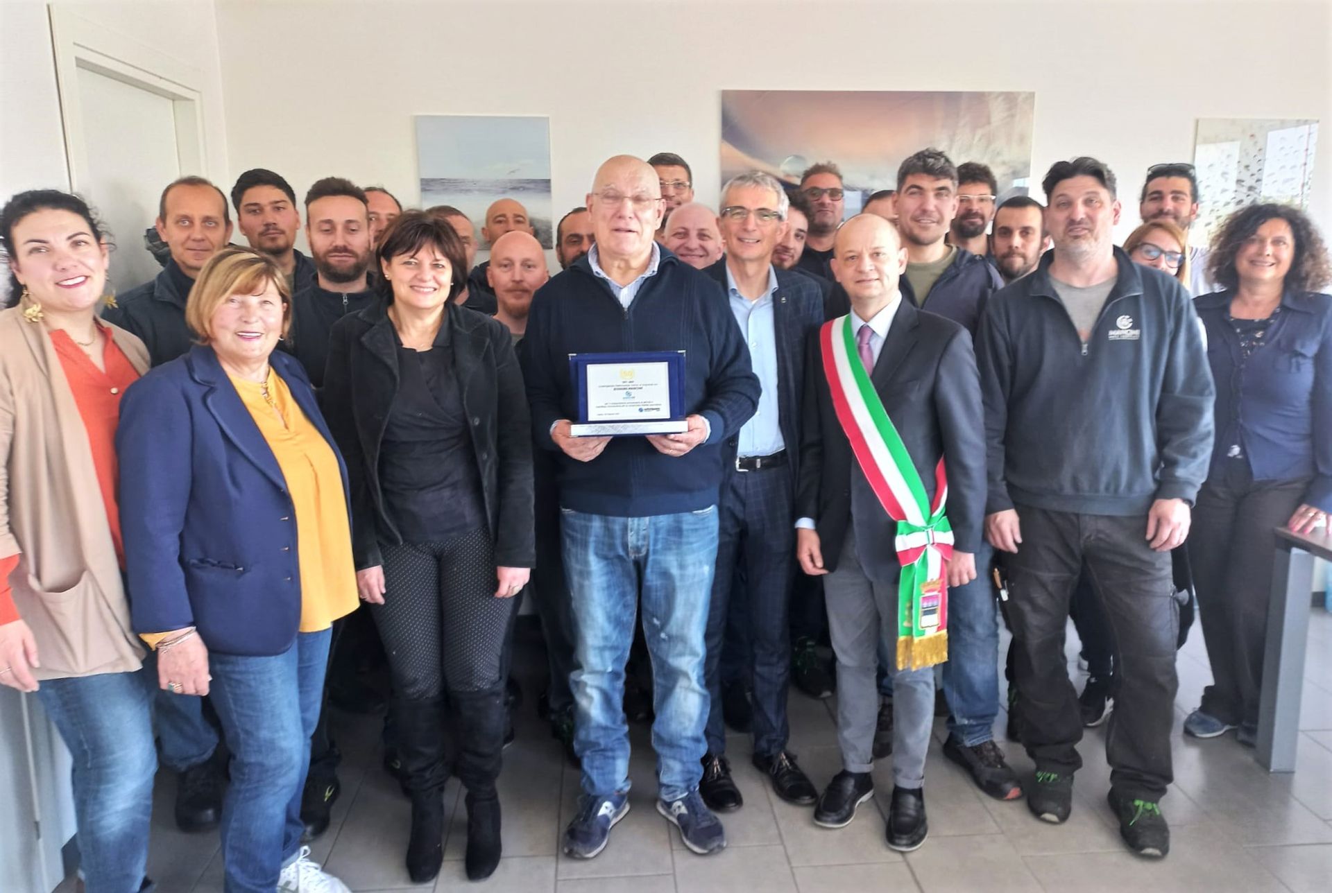 La targa è stata consegnata da Eugenio Battistini, responsabile Confartigianato, e dall’assessore allo Sviluppo economico del Comune di Cesena Luca Ferrini.