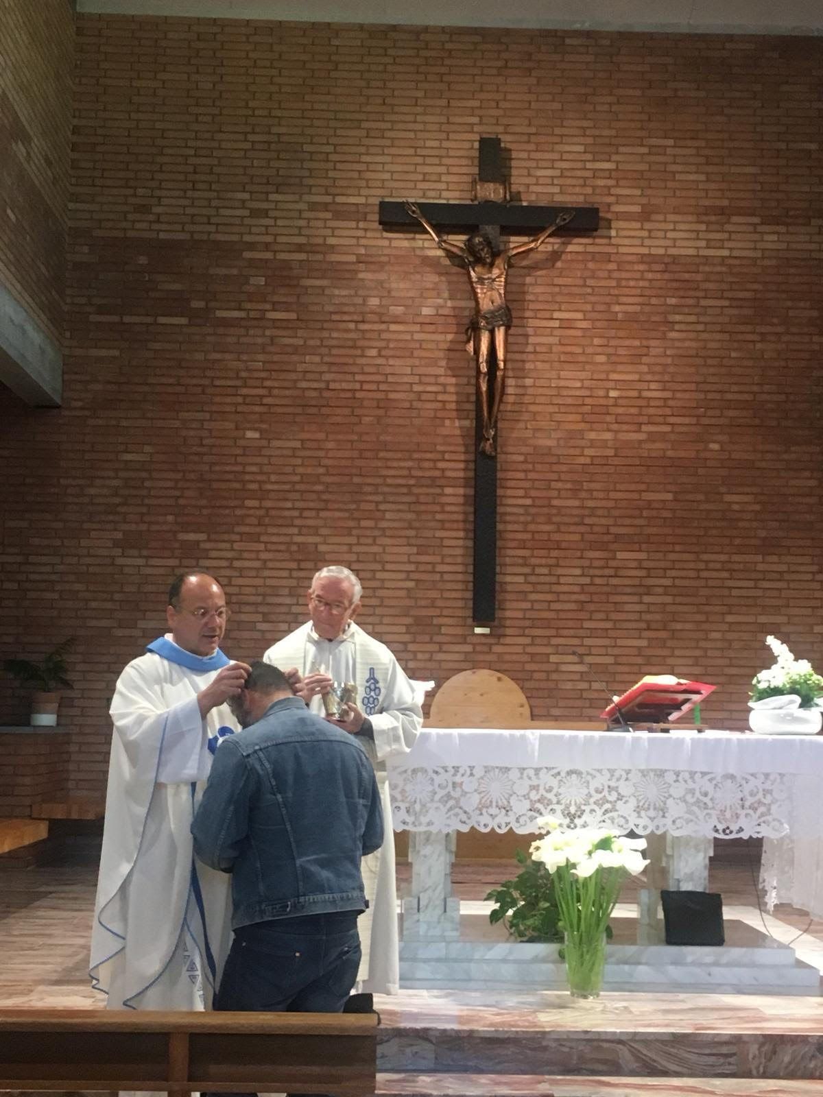 È partito questa mattina, poco dopo le 8, da Case Finali dove abita e dove ieri ha ricevuto la benedizione dal parroco don Marcello Palazzi (Foto qui sotto). Si tratta di Marco Pieri di cui abbiamo parlato anche nelle scorse settimane per la sua impresa solitaria a piedi fino a Roma.
