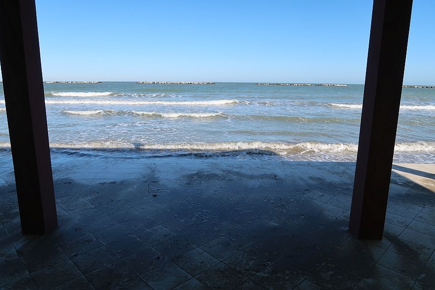 Le mareggiate non danno tregua alla spiaggia di Cesenatico. Come si vede nelle immagini di Pippo foto, scattate questa mattina all’altezza del bagno Casadei di Valverde, le onde sono arrivate a lambire le strutture di spiaggia.
