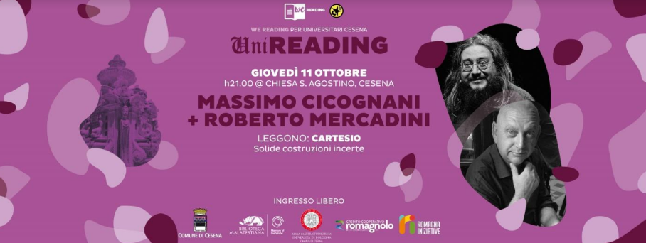 Uni Reading, la rassegna che mette alla prova personalità del mondo accademico e culturale con una performance di lettura inedita, torna con il terzo appuntamento giovedì 11 ottobre alle 21 per uno degli eventi più attesi. All’interno della bellissima Chiesa di Sant’Agostino, in centro a Cesena, si esibiranno lo scrittore e narratore Roberto Mercadini insieme al vicepreside della facoltà di ingegneria e architettura Massimo Cicognani, suo ex professore. Docente ed ex studente, insieme, porteranno una rilettura molto originale del Discorso sul Metodo di Cartesio per provare a spiegare al pubblico in maniera non convenzionale e divertente come, alla base del pensiero razionale, esistano metodi e intuizioni oggettive. L’evento, a ingresso gratuito, è realizzato con il patrocinio del Comune di Cesena e UniBo e lo sponsor di Credito Cooperativo Romagnolo e Romagna Iniziative.