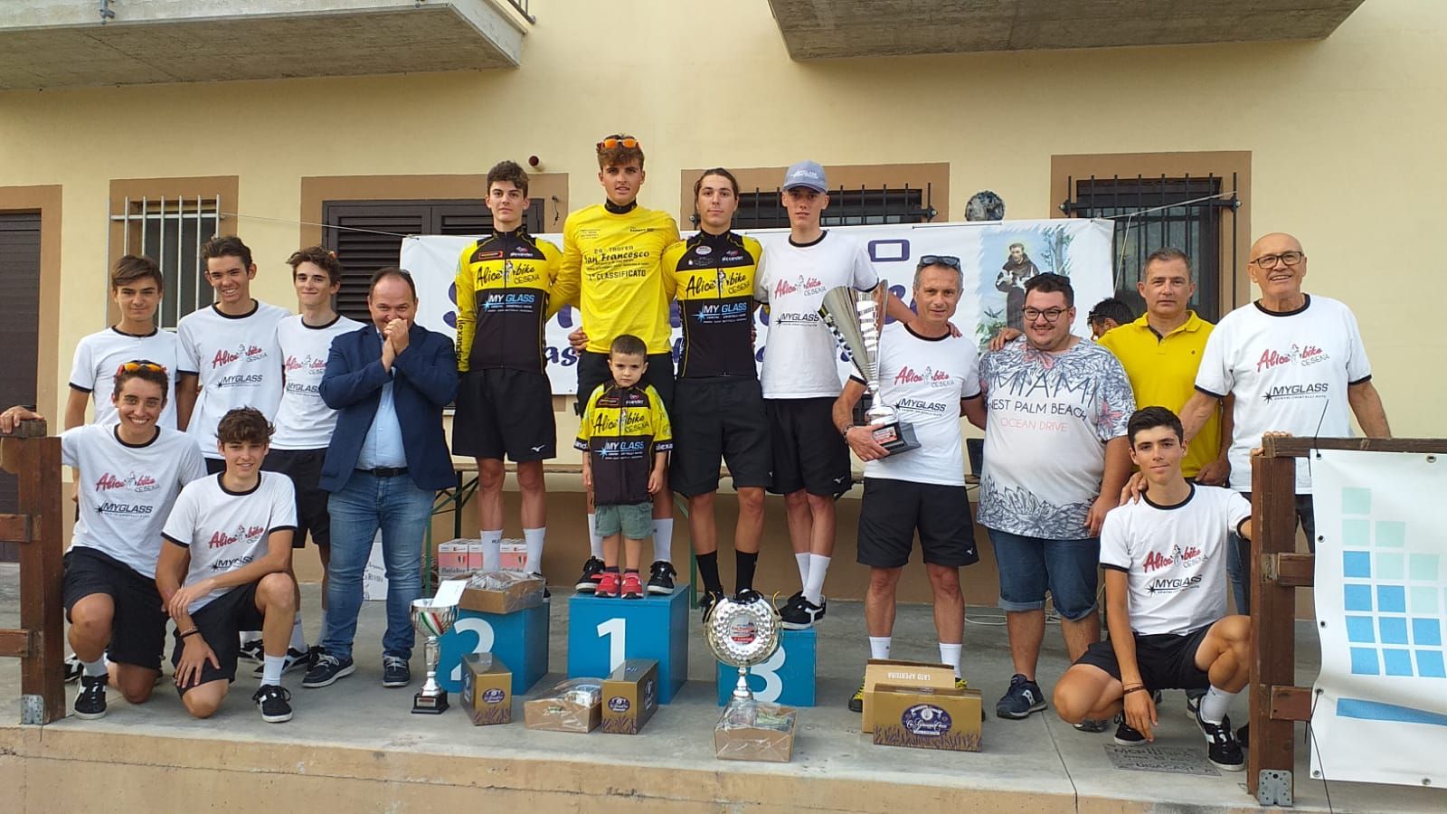 Trionfo di Mattia Casadei ieri domenica 15 settembre a Guarenna di Casoli (Chieti), con l’aggiunta del terzo posto di Elia Bonacci e del quinto di Marco De Angeli. Ottimi i risultati per Alice Bike MyGlass al termine di una gara durissima che prevedeva la doppia ascesa al paese di Casoli, una salita davvero inusuale per la categoria Juniores se si considera che dai 114 metri sul mare si arrivava, in tre km, ai 378 metri di Casoli. I tre corridori in top five hanno consentito al team manager Vittorio Savini e al diesse Francesco Satta di ritirare il premio come migliore società.