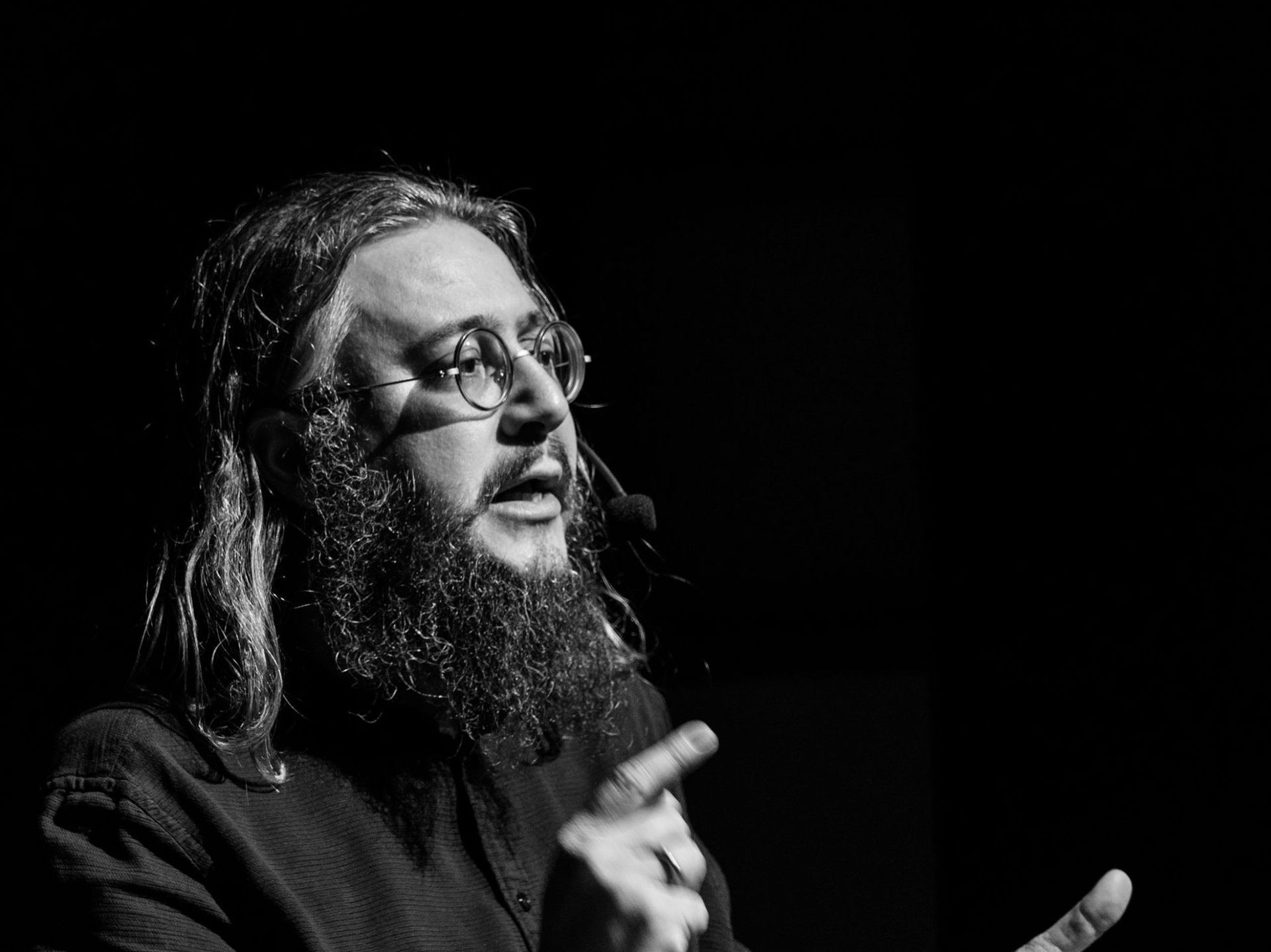 Roberto Mercadini, nato a Cesena nel 1978, è autore e attore: ha in repertorio oltre venti monologhi, che spaziano dalla Bibbia ebraica all’origine della filosofia, dall’evoluzionismo alla felicità. Dice si sé: «Racconto storie (che contengono storie (che contengono altre storie)). A volte sopra un palcoscenico. A volte in video. A volte dentro un libro».
