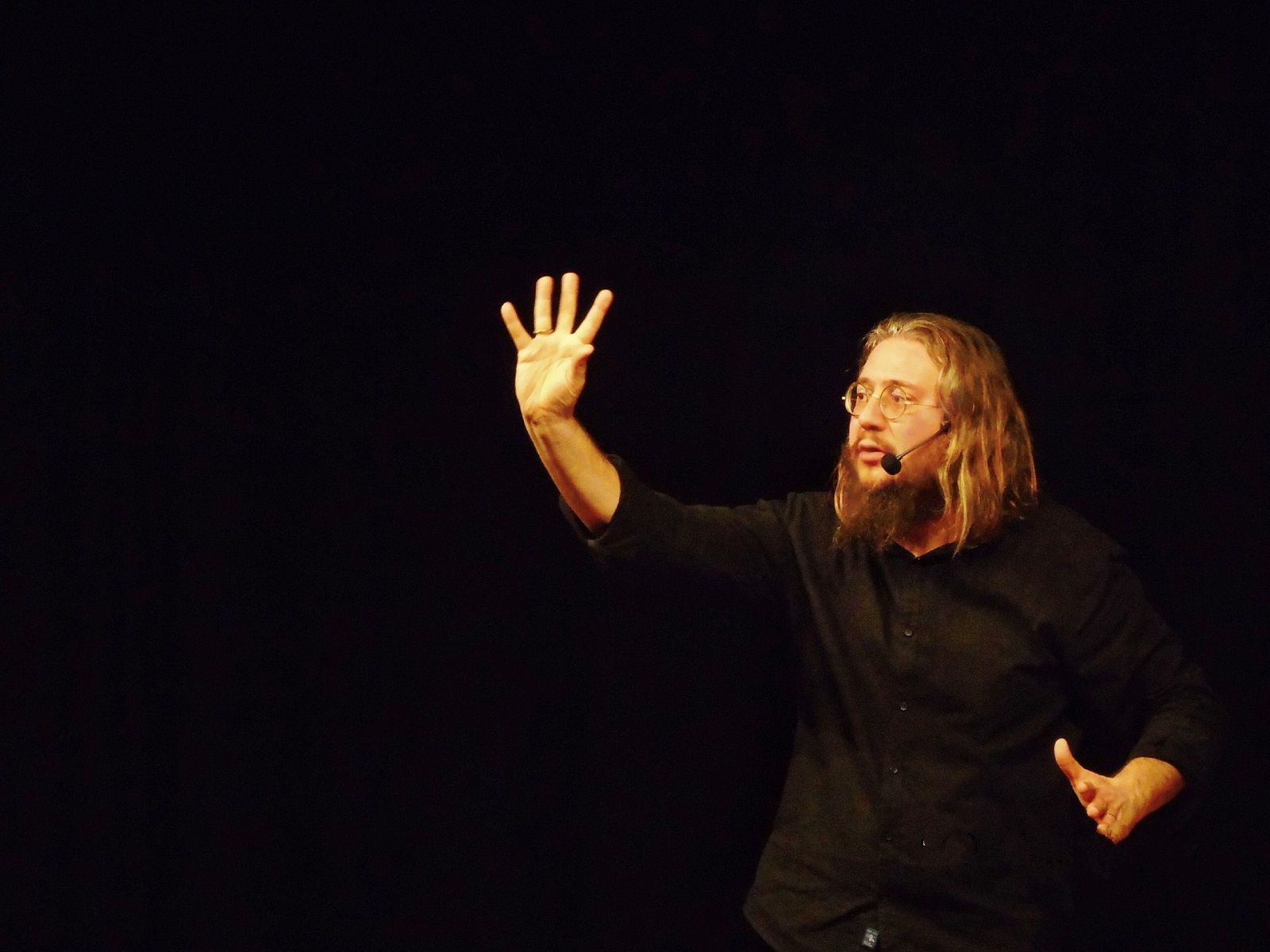 Alle 21,30 comincerà lo spettacolo di Roberto Mercadini, dal titolo Fuoco nero su fuoco bianco. Racconto tentacolare dalla Bibbia ebraica, a cura di Sillaba.