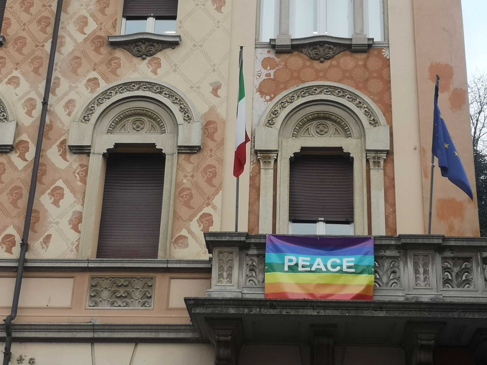 In testa al corteo, la Giunta comunale che ha voluto questo momento pubblico di sensibilizzazione “per rivendicare attivamente e con forza l’inalienabile diritto alla pace“.