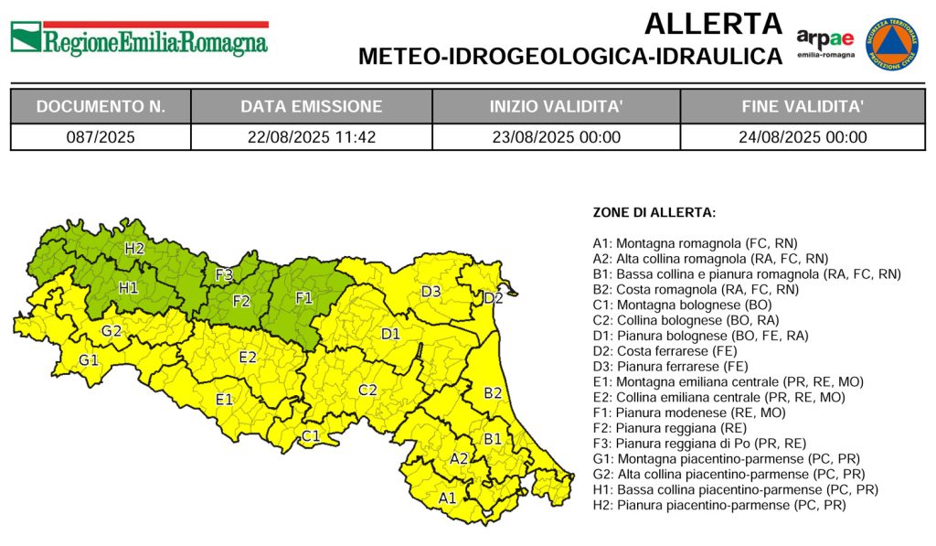 Il Servizio regionale Arpae della Protezione Civile comunica il proseguimento dell’allerta gialla per la giornata di domani, sabato 23 agosto. Sono infatti previsti condizioni favorevoli allo sviluppo di temporali forti con possibili effetti e danni associati, più probabili su fascia appenninica e pianura centro-orientale. Nelle aree interessate dalle precipitazioni intense non si escludono ruscellamenti lungo … Leggi tutto Meteo, ancora condizioni favorevoli allo sviluppo di temporali