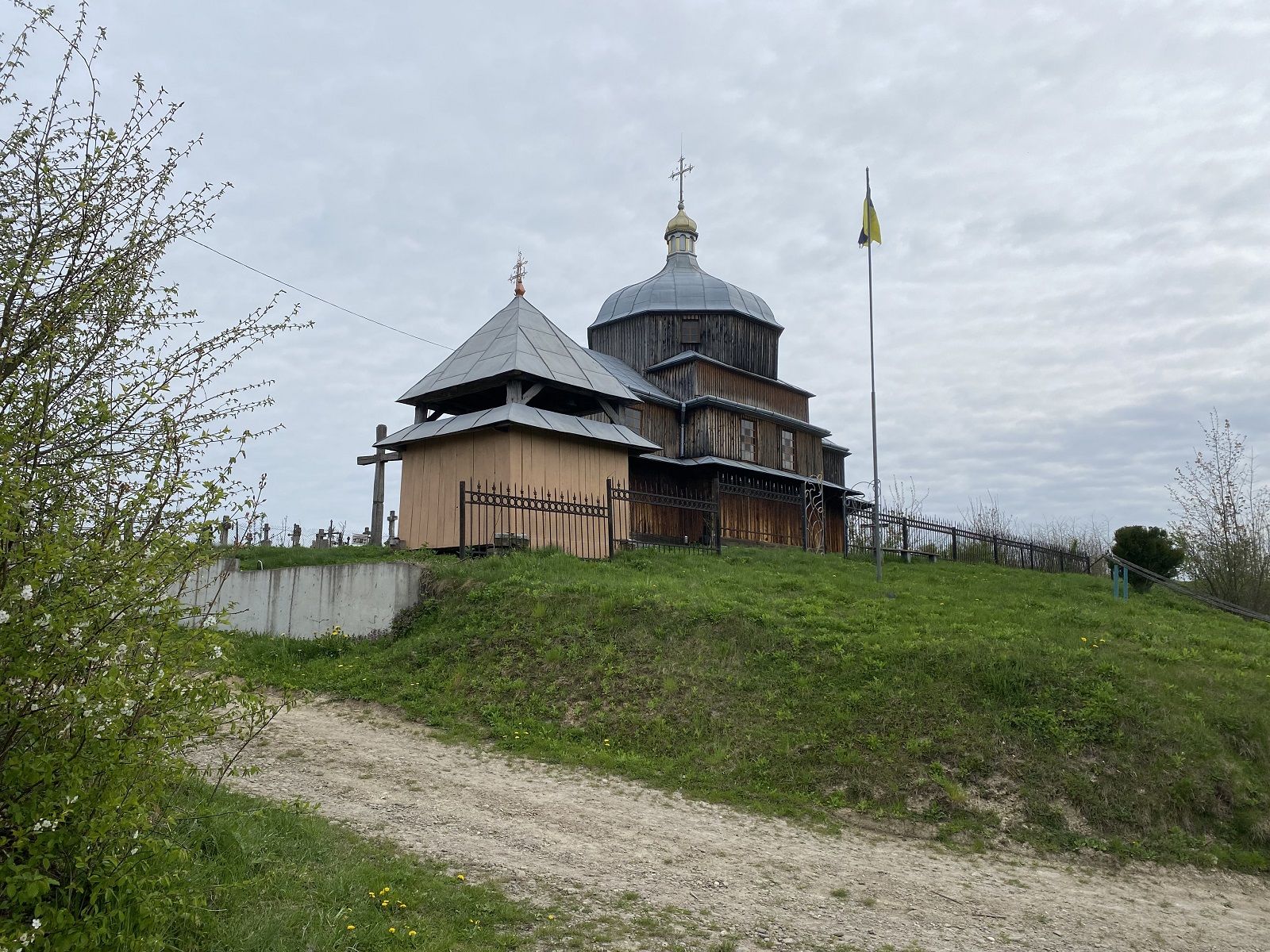 Lo abbiamo visto questa mattina, in un villaggio costituito da un pugno di case sparse, in collina, a soli 25 chilometri da Leopoli. La frazione si chiama Pidtemne. Appena venti minuti di auto e si entra in una dimensione dimenticata da decenni. Qua la gente va ancora a cavallo (foto in alto) e la chiesa è una costruzione in legno del 1900 (foto qui sotto). Don Andry viene a celebrare qui ogni sabato e spesso anche la domenica.