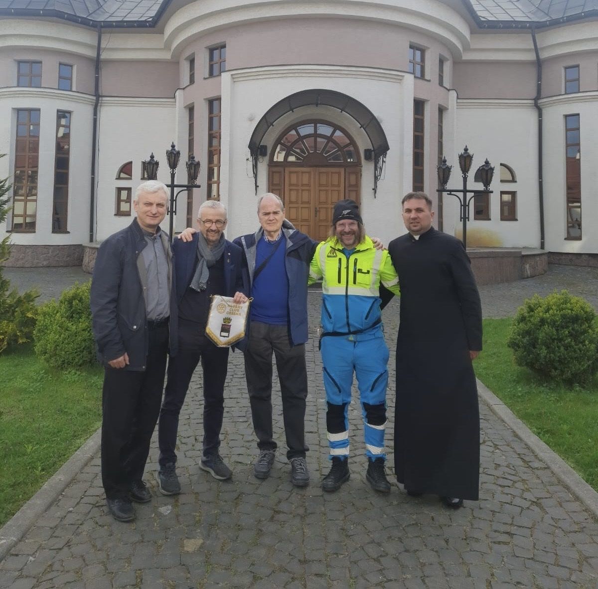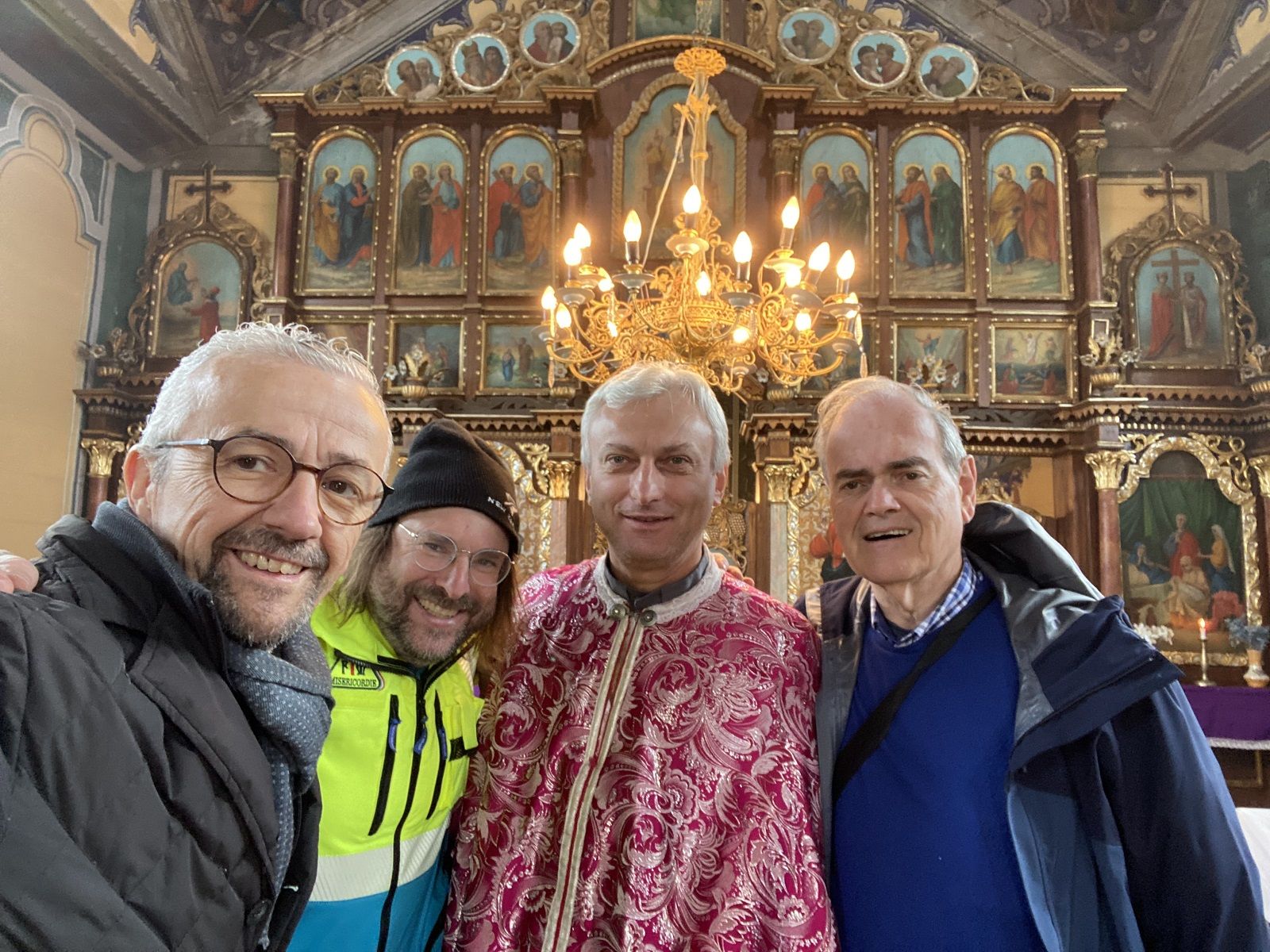 Il sacerdote è atteso. Noi lo accompagniamo in questo suo servizio pastorale. (Nella foto qui sotto, don Andry al termine della celebrazione. A sinistra, il sottoscritto, poi Andrea Casadei e Valerio Navarra che da anni ha il contatto con il sacerdote di Leopoli)