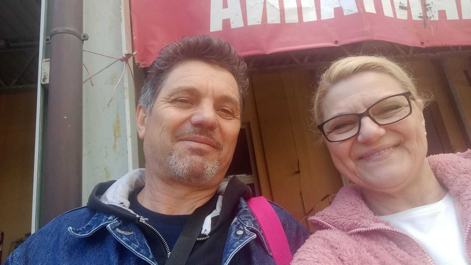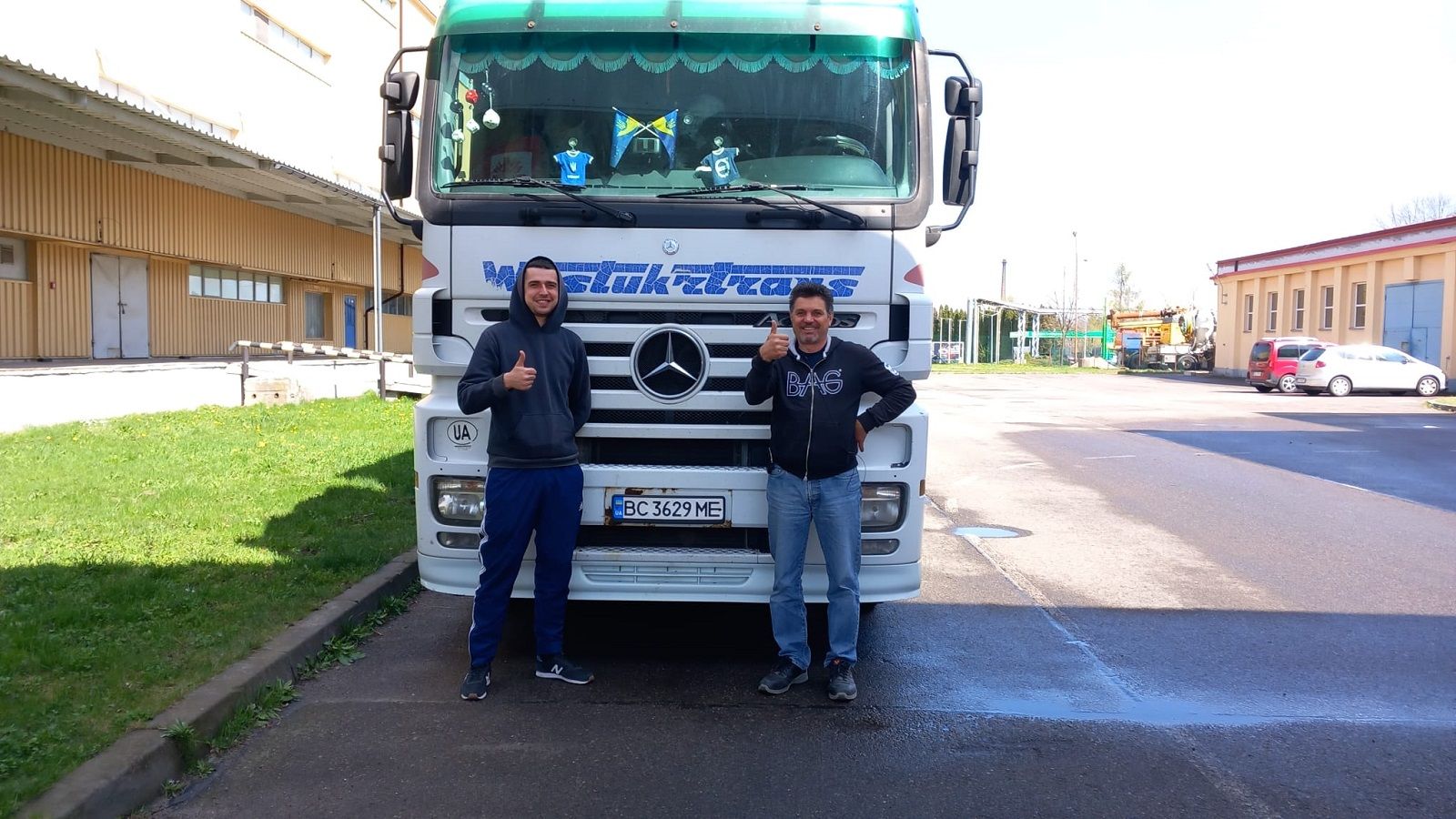 E un’altra ancora. Qui è Wiola con l’autista partito ieri mattina alle 5 da Cesena.