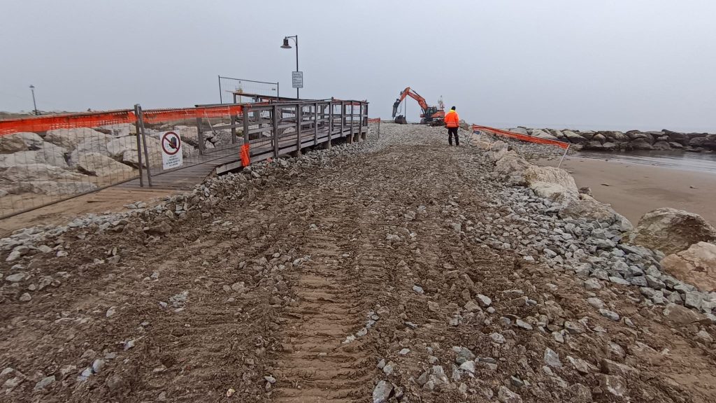 La Giunta Comunale nel dicembre 2025 aveva approvato una variazione di bilancio urgente da 80mila euro proprio per coprire i danni della mareggiata. Dal mese di ottobre erano ripresi i lavori – dopo la pausa per la stagione estiva – e per completare la sostituzione delle celle – non potendo utilizzare il pontone per esigenze dettate dalla capitaneria di porto – è stata creata una pista per il passaggio dei mezzi pesanti realizzata con massi aggiuntivi e altro materiale di riempimento. Proprio la pista è stata fortemente danneggiata dalla mareggiata, insieme ad alcuni manufatti prefabbricati costituenti il basamento delle nuove celle frangiflutti, che ora sono da ricostruire in stabilimento.