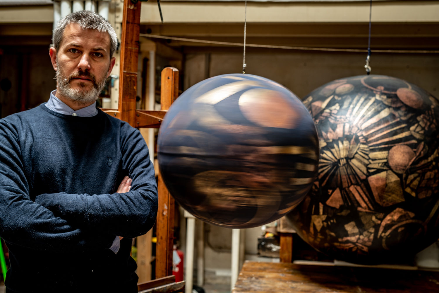 Nel 2019 fu realizzata dalla Fondazione Balestra, nell’ex chiesa Madonna di Loreto, la mostra “Il punto e il circolo”, con uno sguardo antologico sulla produzione più recente dell’artista, dai grandi dischi in rame alle ceramiche, dai disegni alle incisioni. In quella occasione venne realizzata anche una grande sfera incisa che ha avuto poi un seguito nella stessa produzione artistica dell’autore.