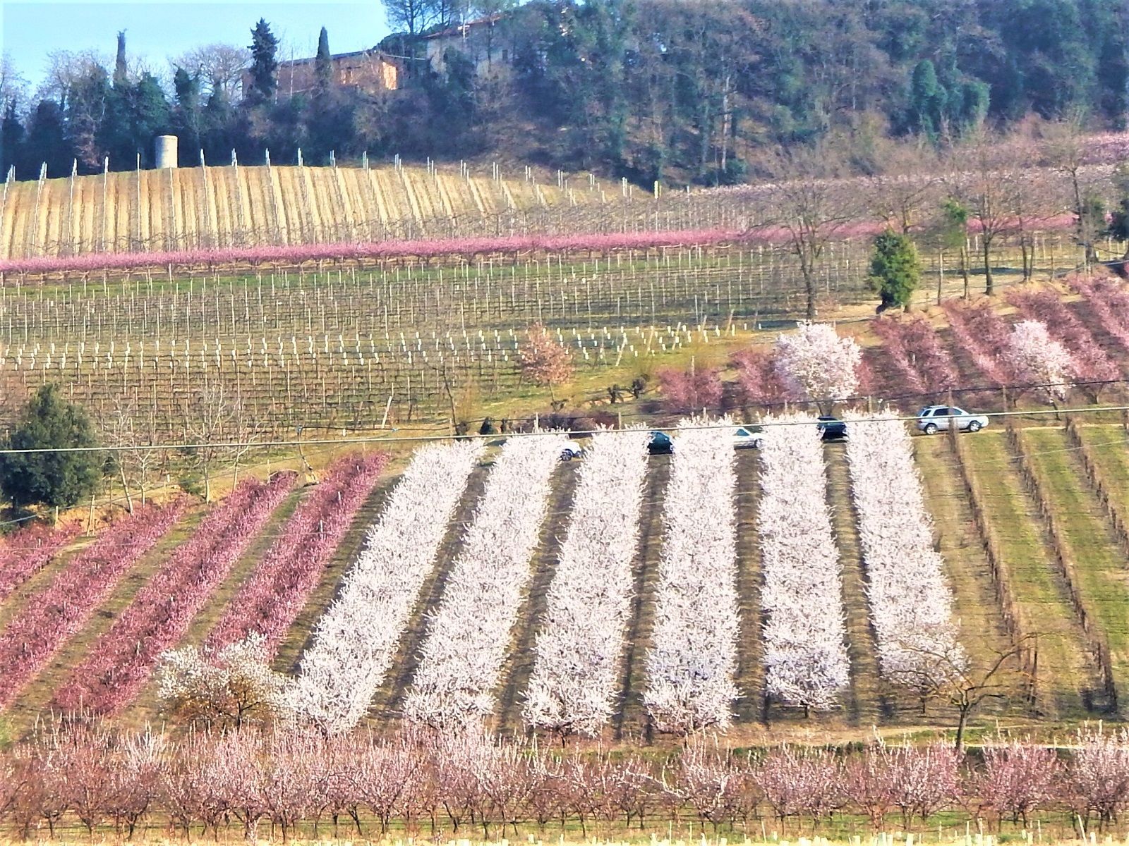 Qui sotto un mix di rosa e bianco che rende i campi simili a giardini fioriti.
