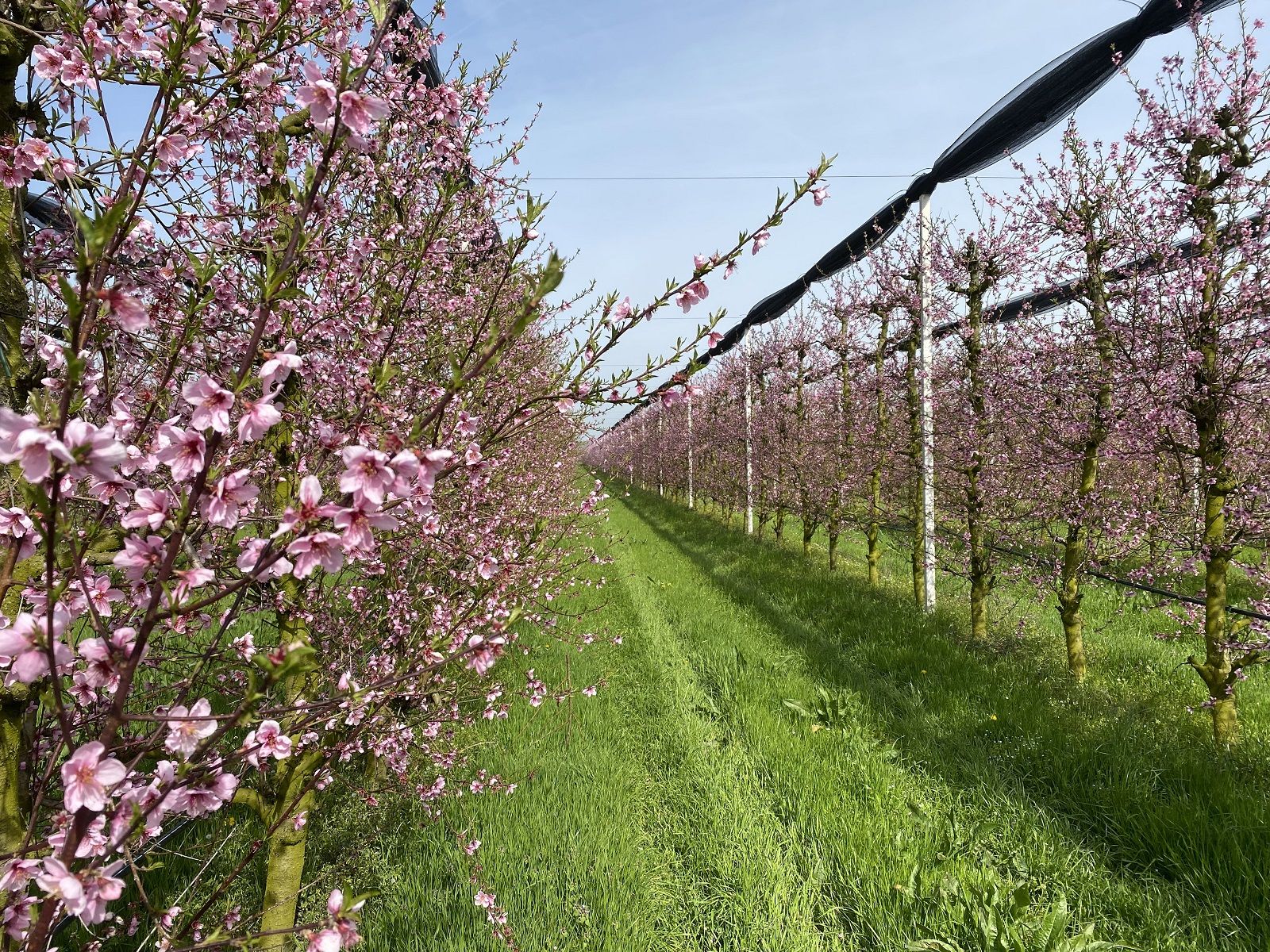 Queste due foto sono state scattate a Faenza il 14 marzo 2024, due giorni fa, in un terreno dedicato per 10 ettari a pescheto