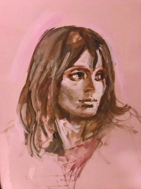 Bruna è venuta a mancare a dieci anni di distanza da Alberto. Solo gli amici più intimi l’hanno frequentata e sostenuta in questi ultimi anni. Bruna, però, ha un grande privilegio: la sua memoria resterà per sempre impressa sulle tele, nelle opere dell’artista che l’ha scelta come musa ispiratrice, che l’ha ritratta nei suoi paesaggi dentro l’anima della sua pittura. Il volto di Bruna ritorna, infatti, in molte figure femminili: i tratti asciutti del suo volto, gli occhi grandi e scuri, la frangia e i capelli lisci che poggiavano appena sulle spalle. Li ritroviamo anche in questo disegno ad acquerello su carta che le aveva donato. E l’amore dell’artista per lei emerge anche nelle molte lettere, nei frammenti e nei “pizzini d’amore” che il Maestro aveva l’abitudine di dedicarle. Qui si avverte ed emerge tutta l’importanza che Bruna ha avuto nella sua vita: «Viene il giorno che due persone non possono riconoscere se stesse senza la reciproca presenza. / È venuto per me e per te, il giorno che solo insieme siamo noi stessi. / Divisi siamo una sola metà; / Divisi siamo solo disperati; / Insieme siamo solo felici» (A. Sughi).