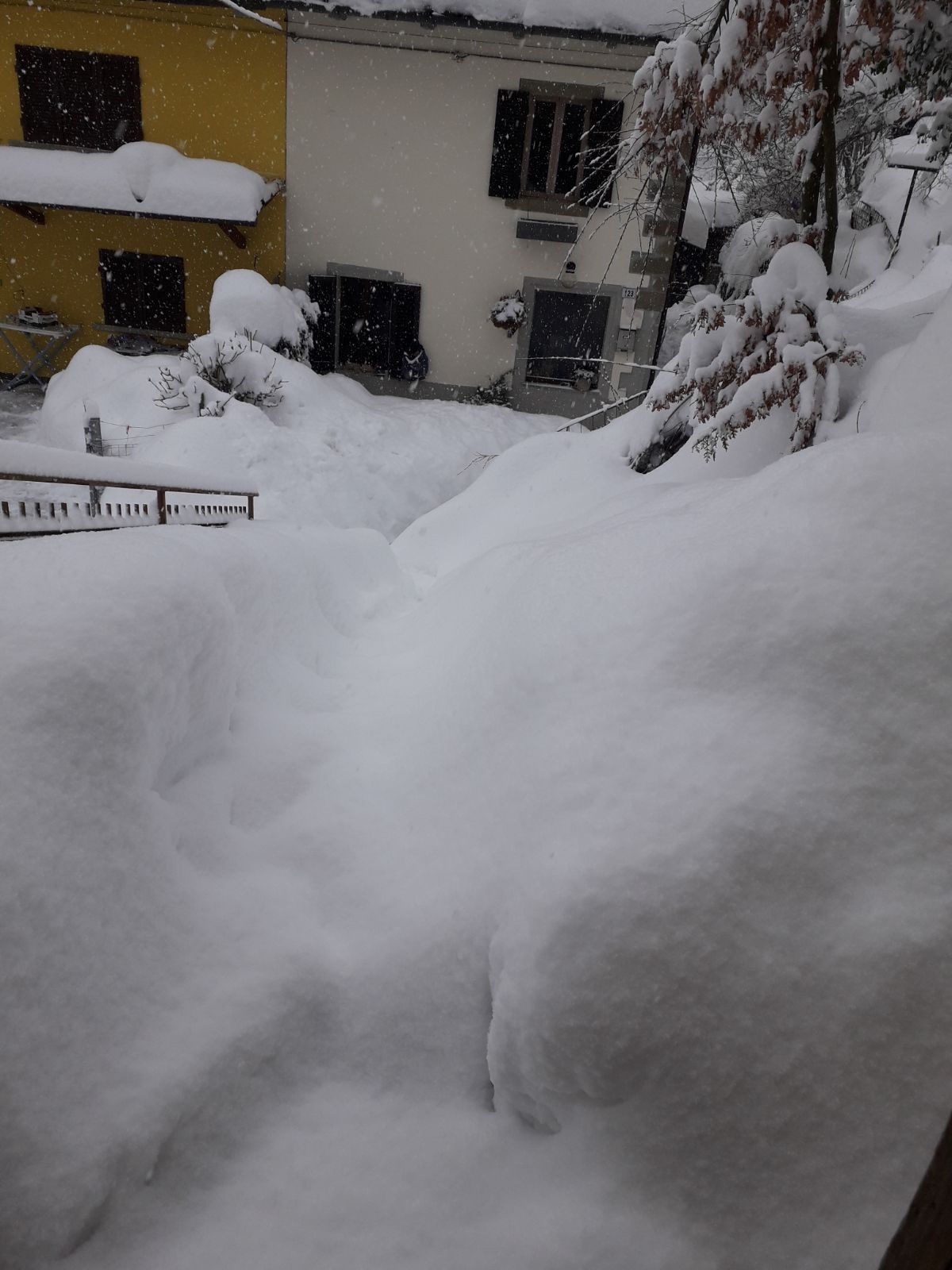 Nevica ancora in alta Valle del Savio. Scuole chiuse a Bagno di Romagna