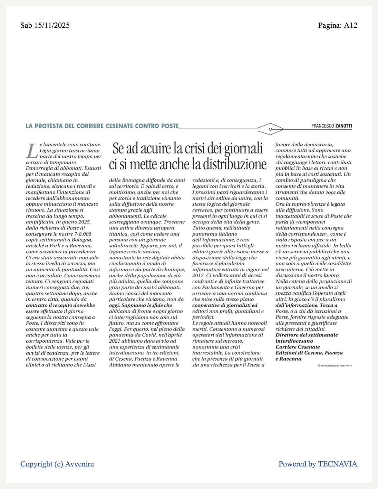 Il sito del Corriere Cesenate vuole fornire ai lettori un’informazione di qualità in forma gratuita.
