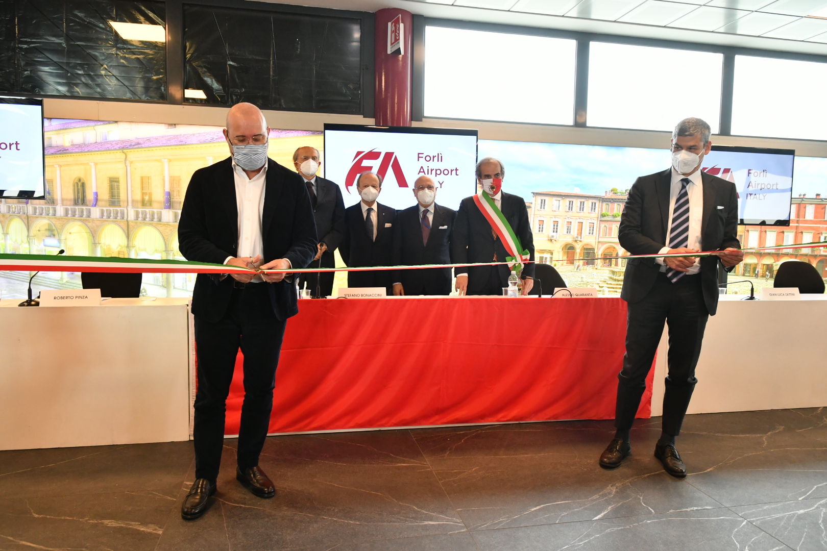 Presente il presidente della Regione, Stefano Bonaccini, col il sindaco di Forlì, Gian Luca Zattini, ilpresidente di Forlì Airport, Giuseppe Silvestrini, il vescovo della diocesi Forlì – Bertinoro, Monsignor Livio Corazza, e, collegati da remoto, la ministra delle Infrastrutture e dei Trasporti, Paola De Micheli, e il direttore generale Enac, Alessio Quaranta.