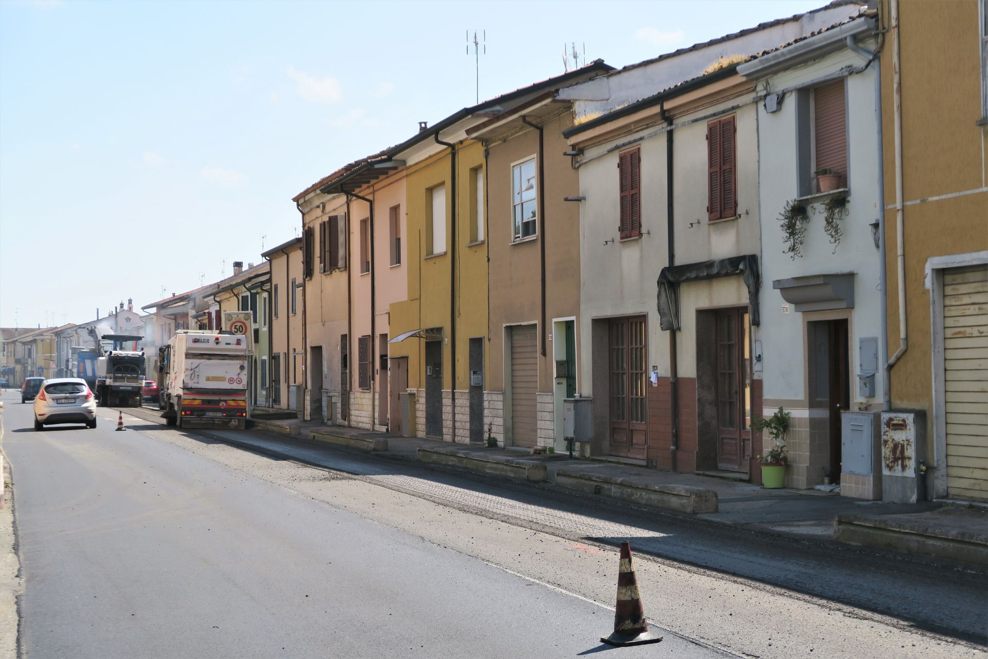Lavori di asfaltatura questa mattina in via Cesenantico, a Macerone di Cesena.