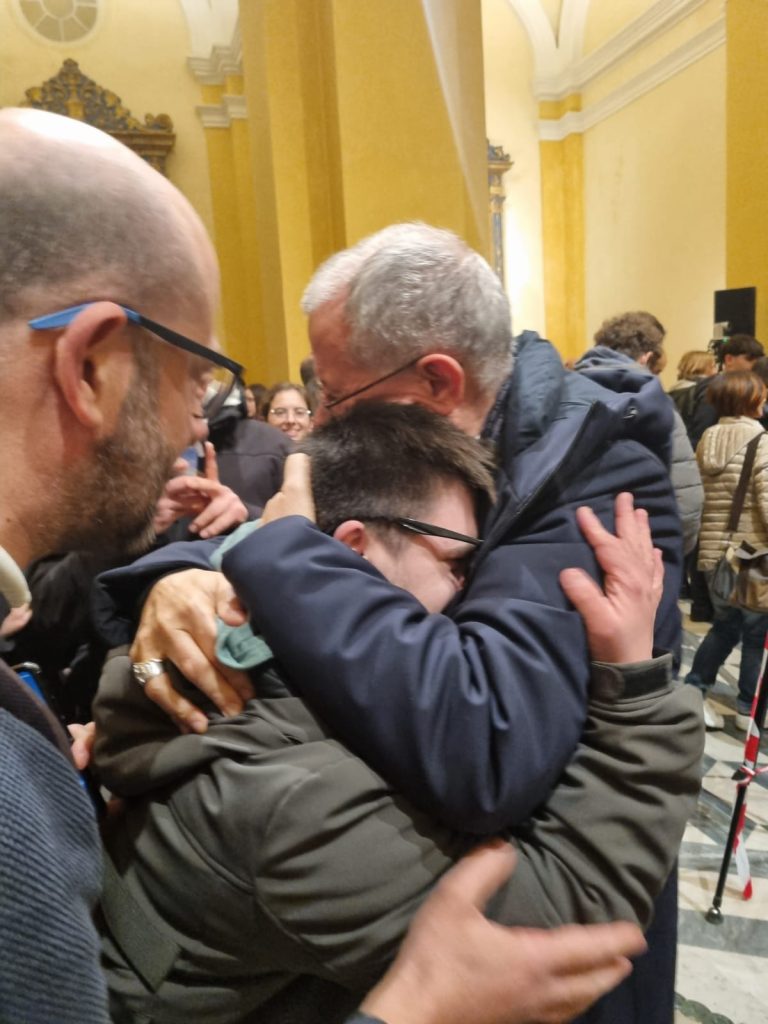 L’abbraccio con un giovane (foto: Sabrina Lucchi)