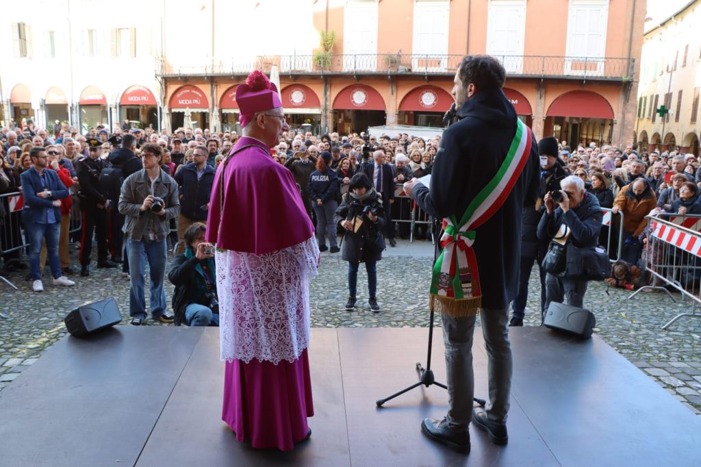 Piazza del Popolo, a Cesena, accoglie il nuovo vescovo, l’arcivescovo Antonio Giuseppe Caiazzo.