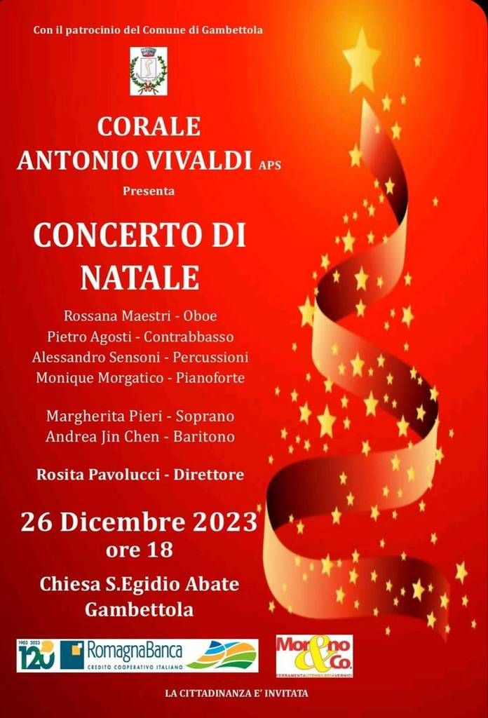 La corale Antonio Vivaldi presenta il Concerto di Natale. L’appuntamento è per oggi, martedì 26 dicembre, alle 18 nella chiesa parrocchiale di Gambettola martedì 26 dicembre.