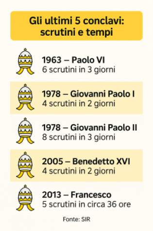 • 2013 – Francesco: 5 scrutini (più uno nullo) in circa 36 ore