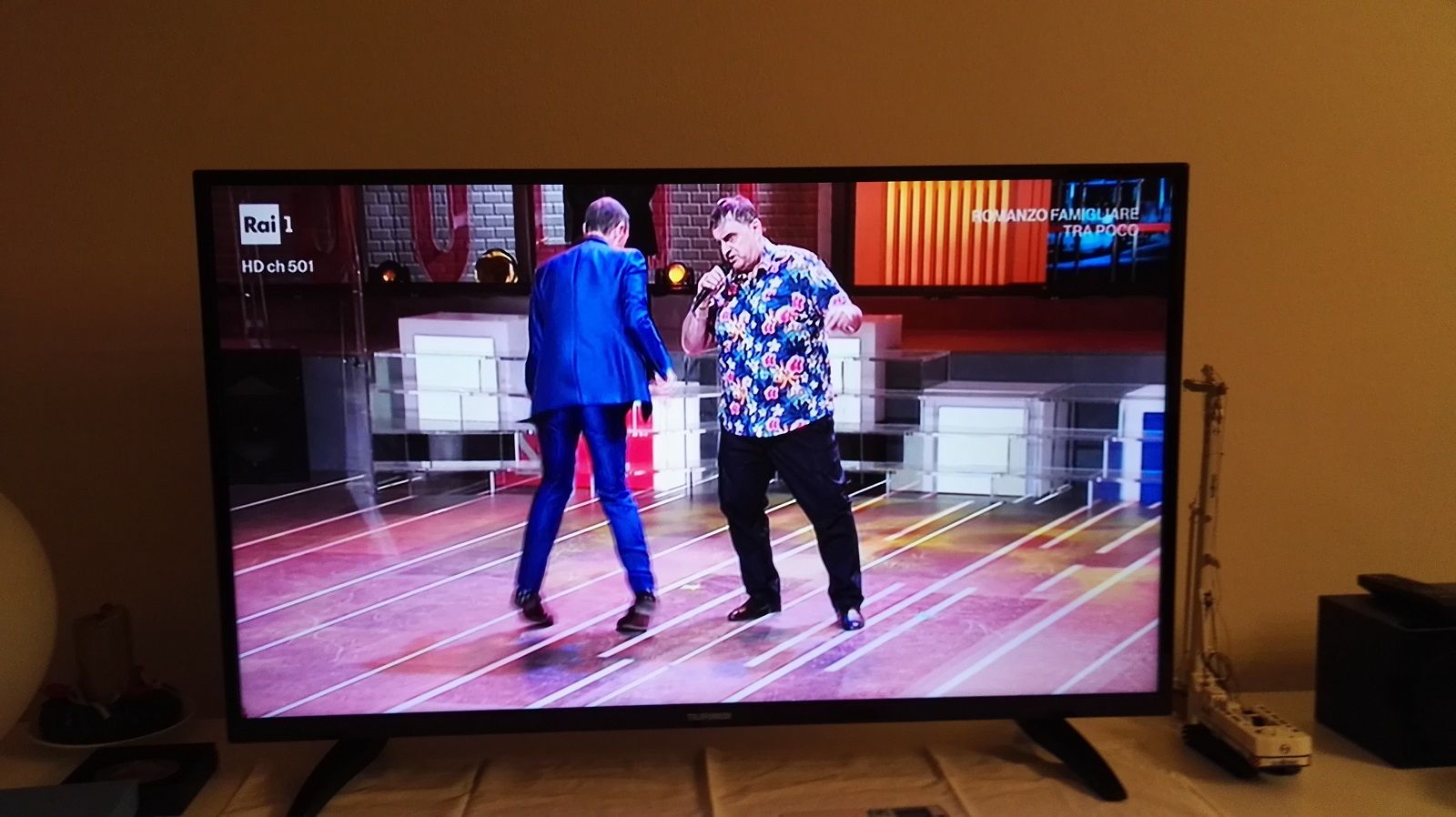 Santoli ha poi fatto l‘imitazione di Adriano Celentano, il molleggiato. E’ talmente piaciuto ai numerosi presenti in studio che poi con lui ha duettato, come mostra la foto, lo stesso Amadeus. Esilarante il duetto tanto da fare scattare l’ovazione da parte del pubblico per entrambi i protagonisti.