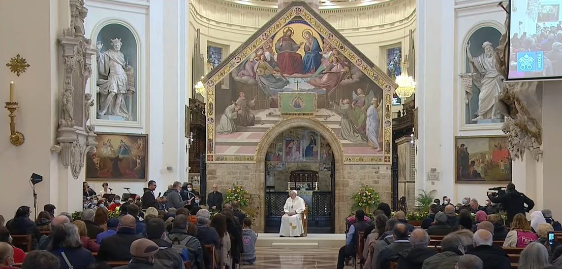 Papa Francesco ad Assisi, accolto da 550 poveri