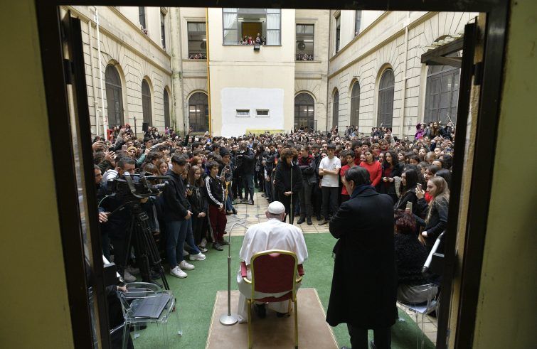 Il Papa ha raggiunto questa mattina, a sorpresa, il liceo romano “Pilo Albertelli”, in via Daniele Manin, zona stazione Termini.