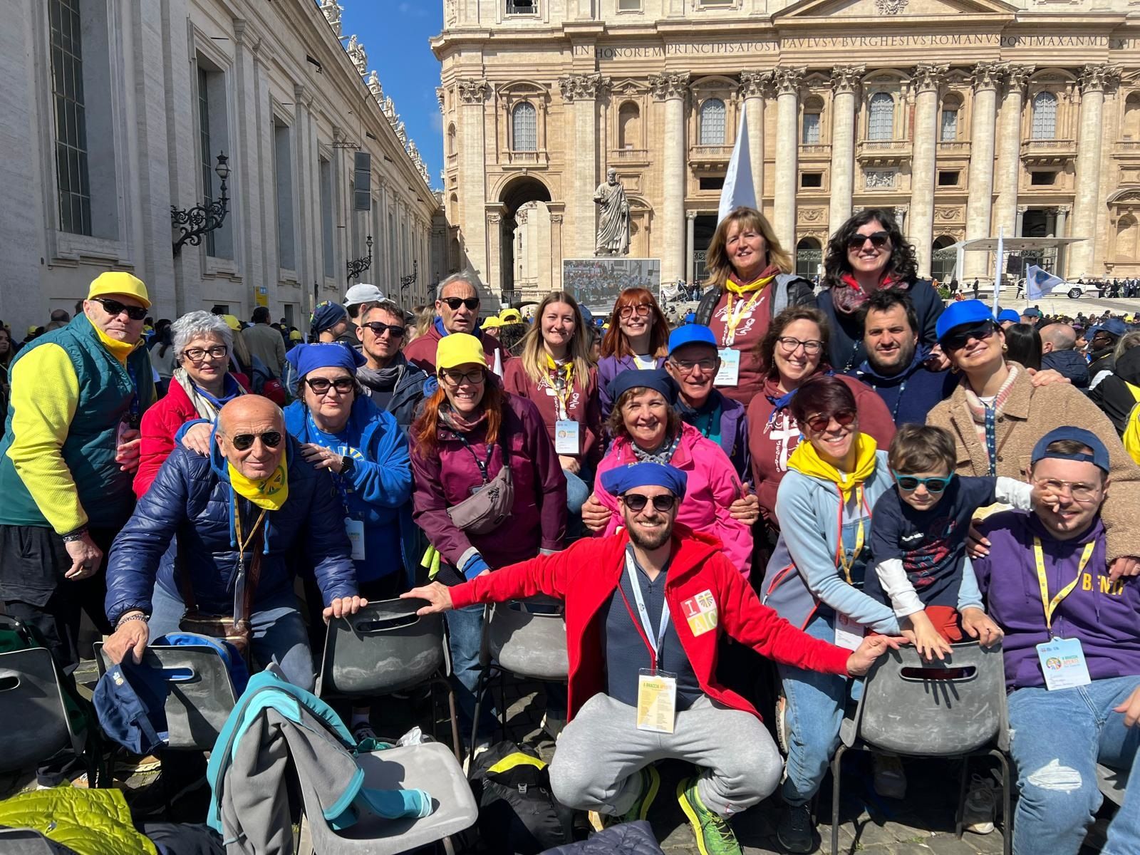“All’origine delle guerre ci sono spesso abbracci mancati o rifiutati, a cui seguono pregiudizi, incomprensioni e sospetti, fino a vedere nell’altro un nemico”. Ne è convinto papa Francesco, che nel discorso rivolto agi oltre 80mila membri dell’Azione Cattolica Italiana, provenienti da tutte le diocesi italiane (tra di essi anche 150 dalla Diocesi di Cesena-Sarsina guidati dal presidente Gennaro Bucci. Nella foto in basso un gruppo di cesenati questa mattina a Roma) e radunatisi in piazza San Pietro nel giorno della Festa della Liberazione, ha denunciato come “tutto ciò purtroppo, in questi giorni, è sotto i nostri occhi, in troppe parti del mondo”.