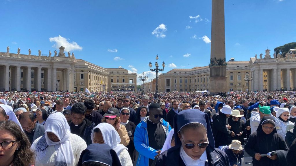 “In unione spirituale con tutta la cristianità siamo qui numerosi a pregare per Papa Francesco perché Dio lo accolga nell’immensità del suo amore”. Nella parte finale della sua omelia per i funerali di Bergoglio, il cardinal Re, si è rivolto all’enorme folla di fedeli che va ben oltre lo spazio delimitato dal colonnato del Bernini. “Papa Francesco soleva concludere i suoi discorsi e i suoi incontri personali dicendo: ‘Non dimenticatevi di pregare per me’”, le parole del cardinale, che poi si è rivolto idealmente al Pontefice defunto: “Ora, caro Papa Francesco, chiediamo a te di pregare per noi e ti chiediamo che dal cielo tu benedica la Chiesa, benedica Roma, benedica il mondo intero, come domenica scorsa hai fatto dal balcone di questa basilica in un ultimo abbraccio con tutto il popolo di Dio, ma idealmente anche con l’umanità che cerca la verità con cuore sincero e tiene alta la fiaccola della speranza”.