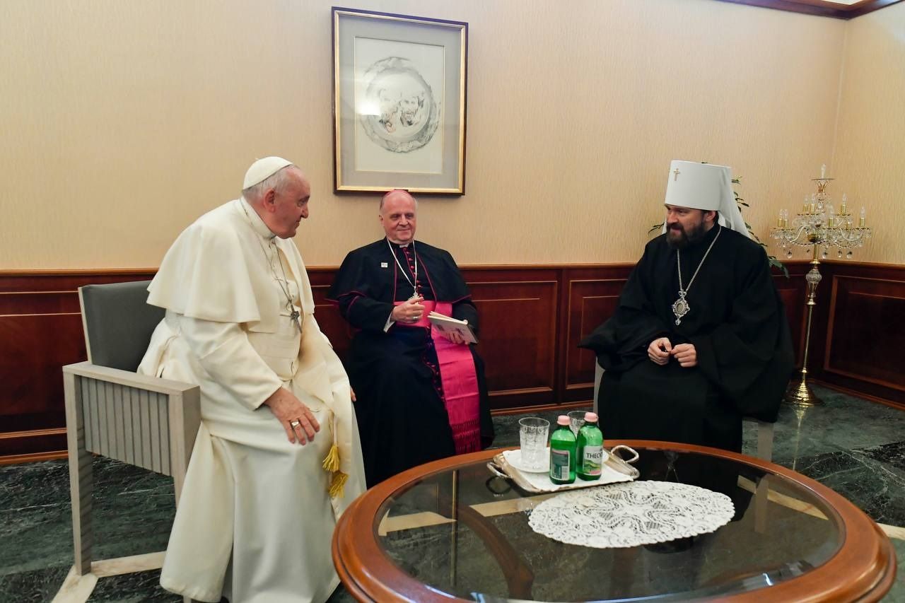 Papa Francesco con il metropolita di Budapest e della chiesa ortodossa ungherese Hilarion. Foto Vatican news