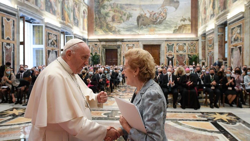 Cari fratelli e sorelle, buongiorno. Sono lieto di incontrarvi nel contesto del vostro Convegno Internazionale. Grazie, signora presidente, per le sue cortesi parole – e chiare, come lei fa sempre, chiare –. In questi giorni trattate temi grandi ed essenziali: la solidarietà, la cooperazione e la responsabilità come antidoti all’ingiustizia, alla disuguaglianza e all’esclusione. Sono riflessioni importanti, in un tempo nel quale le incertezze e le precarietà che segnano l’esistenza di tante persone e comunità sono aggravate da un sistema economico che continua a scartare vite in nome del dio denaro, istillando atteggiamenti rapaci nei confronti delle risorse della Terra e alimentando tante forme di iniquità. Dinanzi a questo non possiamo restare indifferenti. Ma la risposta alle ingiustizie e allo sfruttamento non è solo la denuncia; è soprattutto la promozione attiva del bene: denunciare il male ma promuovere il bene. E per questo vi esprimo il mio apprezzamento: per le attività che portate avanti, specialmente nel campo educativo e formativo, in particolare per l’impegno di finanziare studi e ricerche per i giovani sui nuovi modelli di sviluppo economico-sociale ispirati alla dottrina sociale della Chiesa.
