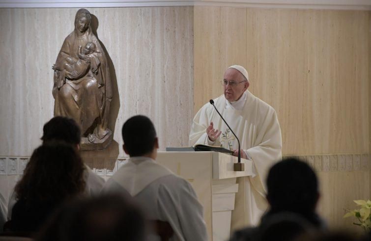 L’ultima parola su cui il Papa si è soffermato è “seduzione”, la seduzione dal peccato, quella operata dal diavolo, il “grande seduttore”, “un grande teologo ma senza fede, con odio”, il quale vuole “entrare e dominare” il cuore e sa come farlo. “Un cuore preverso è quello che si lascia andare per la seduzione e la seduzione lo porta all’ostinazione, alla chiusura e a tante altre cose”, ha osservato il Papa: “E con la seduzione, o ti converti e cambi vita o cerchi di fare compromesso: ma un po’ di qua e un po’ di là, un po’ di qua e un po’ di là. ‘Sì sì, io seguo il Signore, ma mi piace questa seduzione, ma un po’…’.