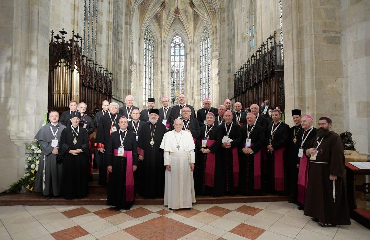 Ne è convinto il Papa, che nel suo discorso ai vescovi, dalla cattedrale di San Martino, Bratislava, ha auspicato “una Chiesa che, sull’esempio di Cirillo e Metodio, unisce e tiene insieme l’Oriente e l’Occidente, tradizioni e sensibilità diverse. Una comunità che, annunciando il Vangelo dell’amore, fa germogliare la comunione, l’amicizia e il dialogo tra i credenti, tra le diverse confessioni cristiane e tra i popoli”.