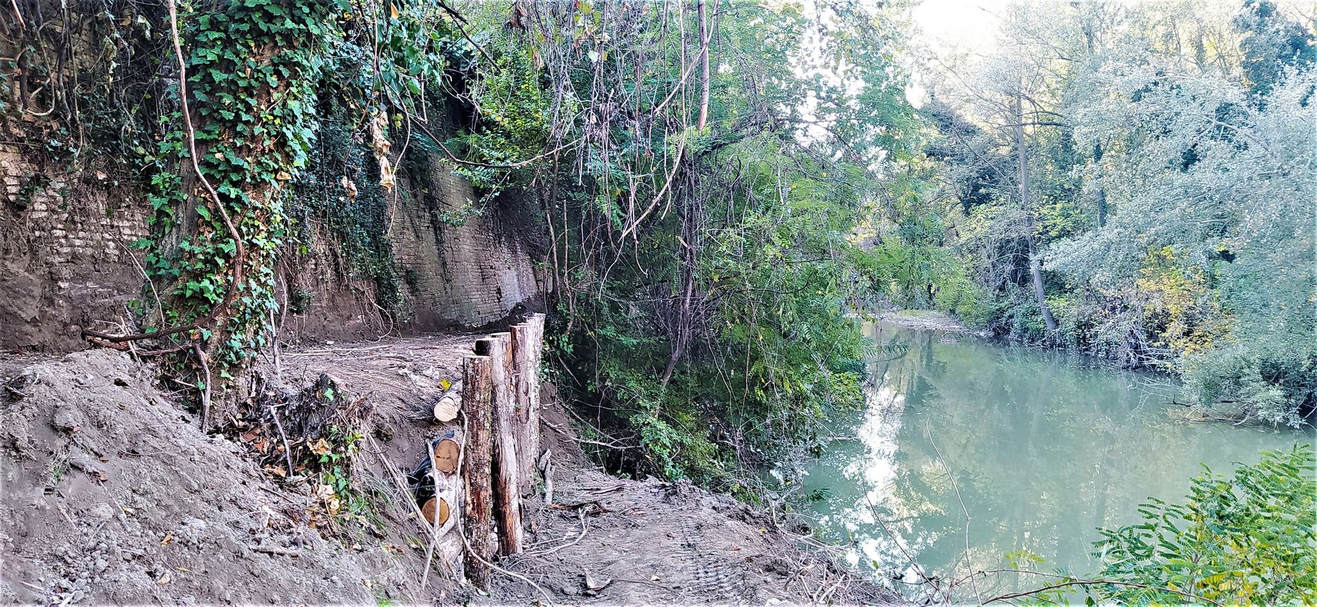 Nell’alveo del fiume è stato invece fatto il taglio selettivo della vegetazione secca o pericolante che poteva ostruire il deflusso delle acque. Inoltre, sono stati realizzati lavori di sistemazione delle scarpate e di difesa delle sponde in erosione, utilizzando massi in pietra naturale e palificate in legno.
