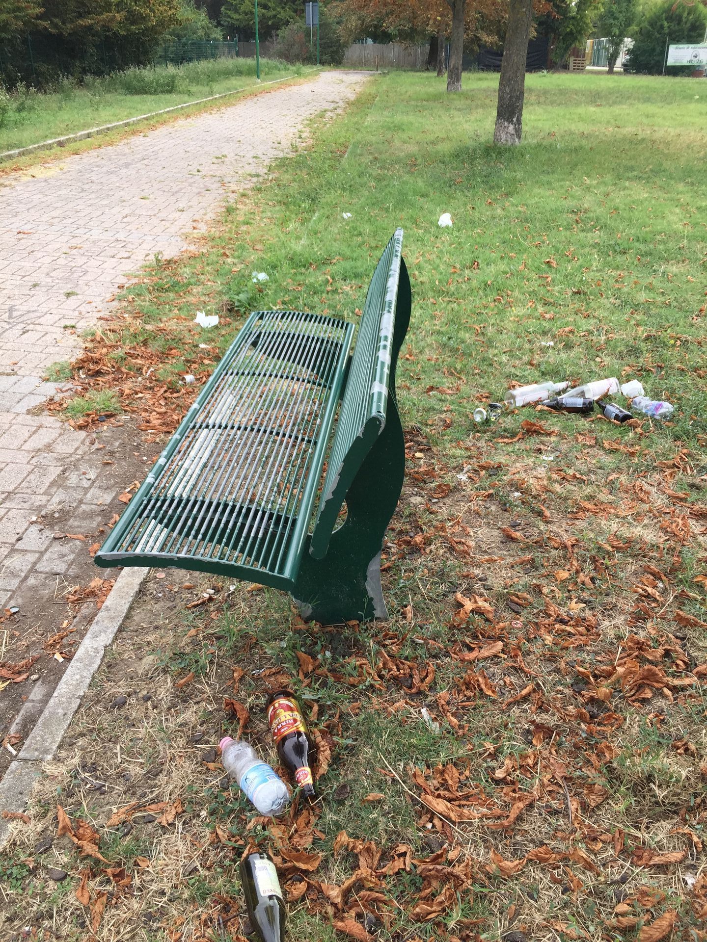 Degrado al Parco Ippodromo: bidoni pieni, bottiglie e immondizia abbandonata. Non è un bel vedere quello che accade nel polmone verde più grande di Cesena.