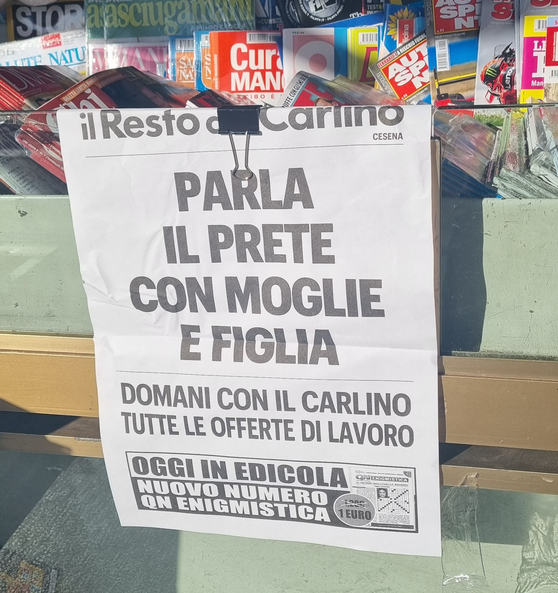 Una locandina a dir poco fuorviante. Lo strillo nelle edicole di oggi di un sacerdote che vuoterebbe il sacco perché ha moglie e figlia è il primo pensiero che viene a tutti.
