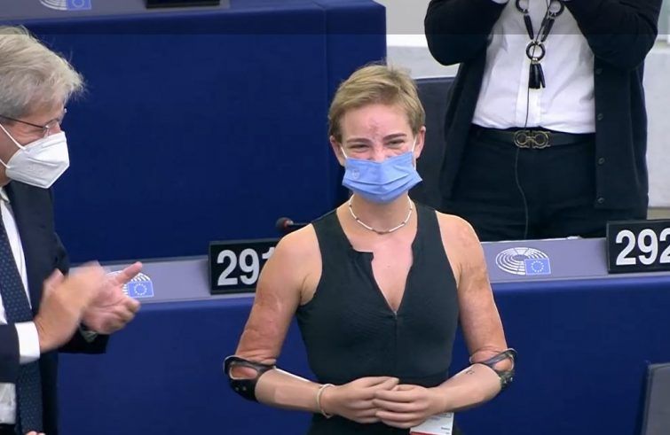 “Se sembra impossibile… allora si può fare”, dice in italiano la Von der Leyen. Bebe Vio si alza in piedi, con accanto il commissario italiano Paolo Gentiloni, e tutto l’emiciclo è in piedi per tributarle un lungo applauso. Von der Leyen aggiunge: “Questo è lo spirito dei fondatori e delle fondatrici dell’Europa. Prendiamo Bebe come ispirazione, prendiamo ispirazione dai giovani. Questa è l’anima dell’Europa, questo è il futuro dell’Europa”.