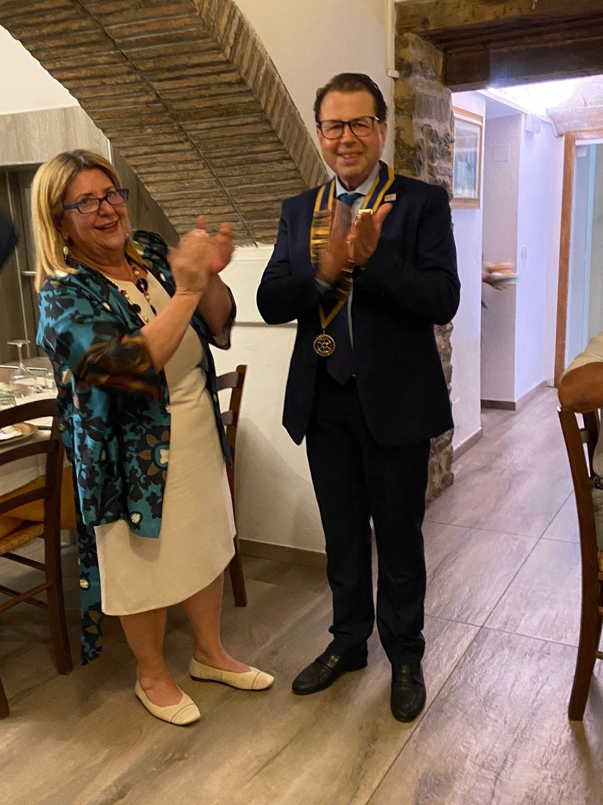 Alla serata ha preso parte anche l’assistente del governatore per l’area Romagna centro, Gianluca Ginestri, che ha spillato la presidente uscente Maria Teresa Bonanni, con la massima onorificenza Paul Harris fellow che il consiglio del club ha deciso all’unanimità di riconoscere alla Bonanni per tutto il lavoro svolto in questi due anni segnati in gran parte anche dalla pandemia. La Bonanni, come promesso nel giorno del suo insediamento, due anni fa, ha raddoppiato l’effettivo del club, portandolo da 23 a 46 soci effettivi. Molti in sala hanno fatto presente che la presidente, per quanto realizzato, avrebbe meritato due onorificenze.